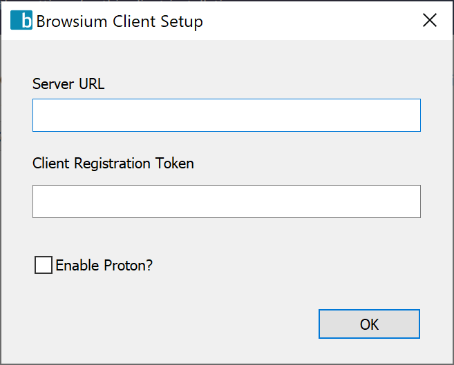 If the Proton Server is configured to require all clients to authenticate themselves, then the Client Registration Token (more details in Proton Server Registration section) required for authentication is entered here.