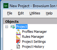 See the Project Node, Profiles Node, Rules Manager Node, Project Settings Node and Tools Node sections for a detailed description of each Objects Pane.