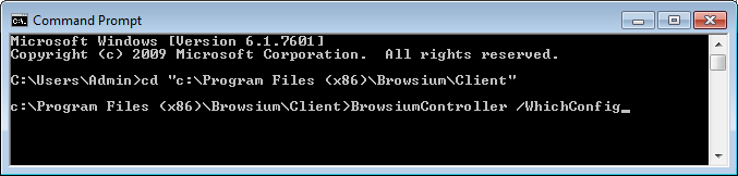 Section titled “Verifying Deployment Settings”Browsium Controller provides a command-line function to query the system and identify the location of the Proton, Ion, and Catalyst configurations to be used the next time the Controller starts. The command BrowsiumController /WhichConfig is run from a Command Prompt.