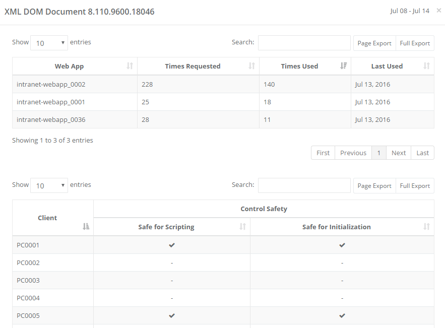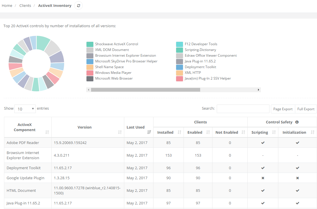 Click on any ActiveX control in the table for the list of clients that have that control installed.