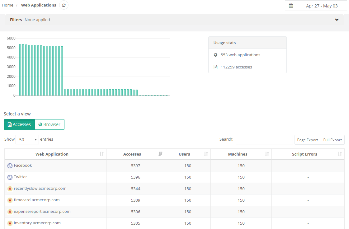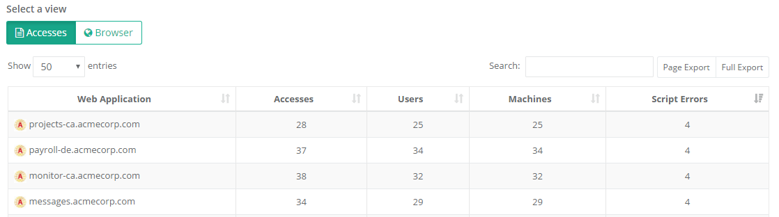 Maintaining unique anonymized user and machine names is key to Proton’s ability to track access counts and other data for each web application used by your organization. While the activity can’t be tracked to an individual user, a unique ID is created to enabled correlation with other data to ensure the organization can make informed decisions when managing the web browser and web application environment.