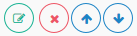 From left to right, these buttons are Edit, Delete, Move up, and Move down.